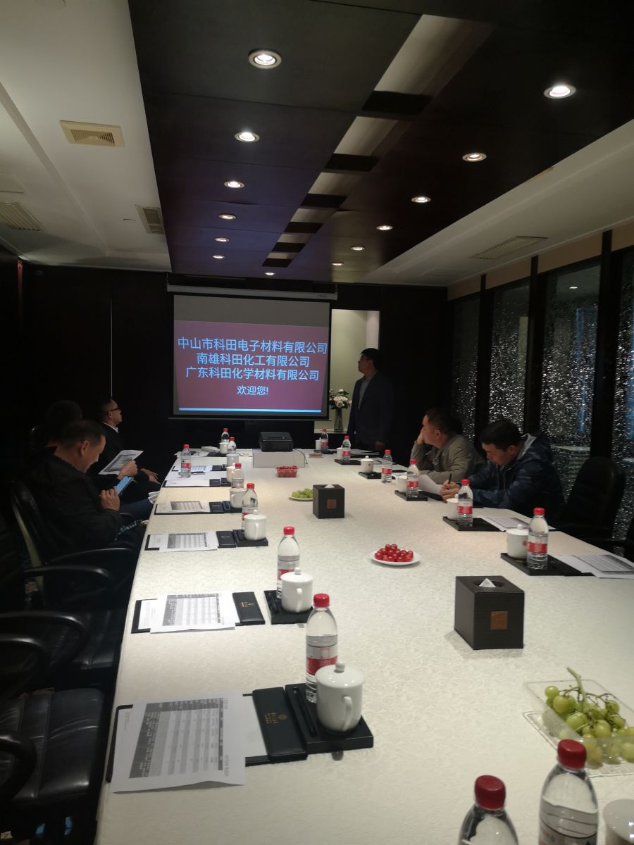 开场由销售部邓经理给客户介绍了科田20年发展进程及未来布局(中山科田主要贸易,南雄科田主要生产UV树脂、广东科田主要生产UV单体),科田为各位合作伙伴提供定制化一体化服务方案